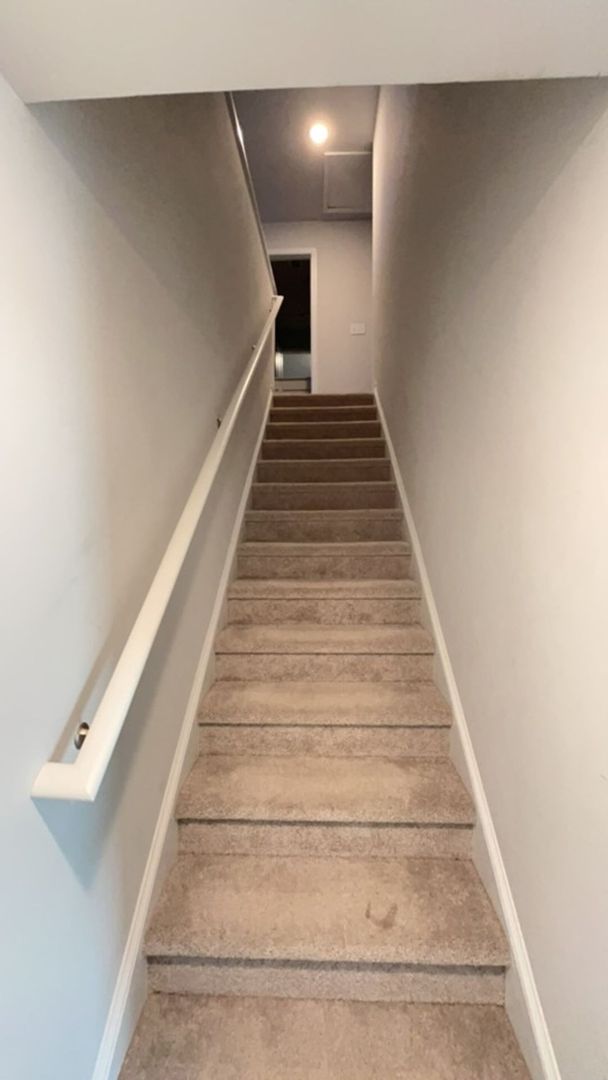 Interior features include white shaker-style cabinets, white quartz countertops, and LVP flooring throughout the downstairs living area. Enjoy high ceilings (9'+), a kitchen island, and walk-in closets.