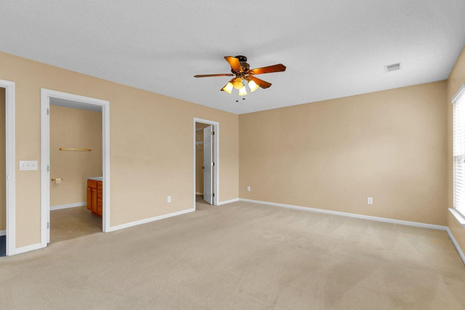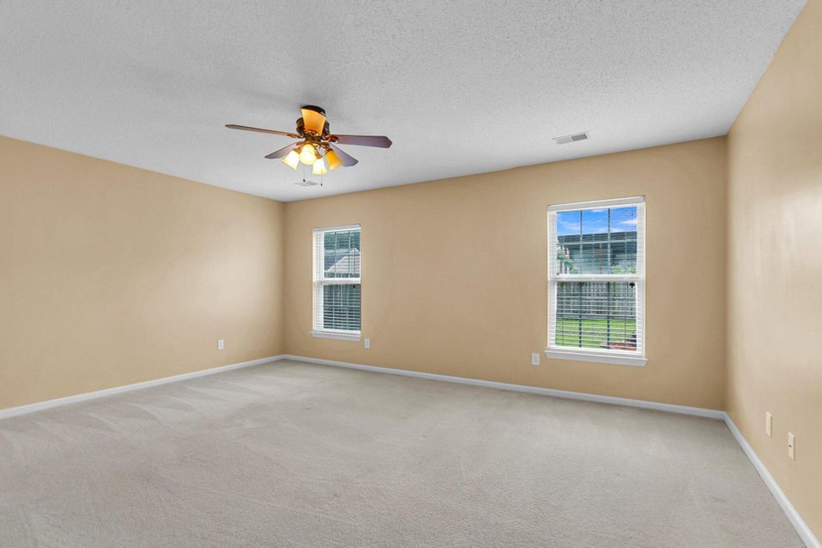 This charming 5-bedroom, 3-bath home in the lovely Longleaf neighborhood is centrally located near JB Charleston, I-26, I-526, shopping, and parks. The first floor features a spacious great room that flows into a large kitchen and eat-in area, with a breakfast bar perfect for casual seating and extra entertaining space. At the front of the home, you’ll find an entryway closet, a bedroom, and a full bathroom, while a hallway off the great room leads to the laundry room and a second bedroom. The master suite is tucked away at the back for privacy, complete with a walk-in closet, dual sinks, a shower, and a garden tub. Upstairs, a cozy loft is flanked by a bedroom on one side and, on the other, a full bathroom and the fifth bedroom—ideal for a small living space, playroom, game room, or reading nook. Pets are negotiable, with a limit of two dogs under 30 lbs.