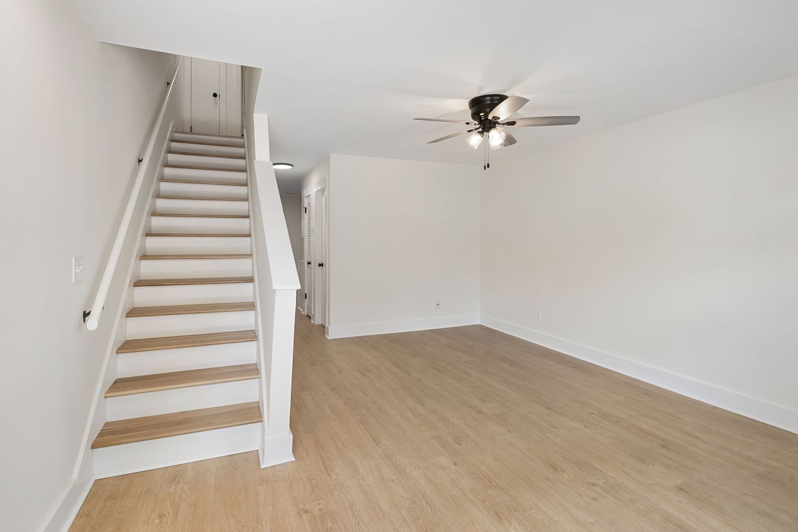 Available now. Water included! Beautifully renovated 2BR, 1.5BA townhome in one of James Island’s hottest areas! Updates include new LVP flooring throughout, fresh trim and paint, shaker-style cabinets with quartz counters, new appliances, new light and plumbing fixtures, new shower and vanities. All windows and exterior doors replaced this year along with attic spray foam insulation for extra efficiency. The main level features a spacious living room, an updated kitchen with a dining area, a powder room, laundry, and a private patio. Upstairs are two bedrooms with a shared full bath; the primary bedroom has its own covered balcony. Two assigned parking spots plus two guest spaces for the building. Walking distance to Riverland Terrace, James Island Pour House, Harris Teeter, and the James Island Municipal Golf Course. Pets negotiable with payment of one-time pet fee.