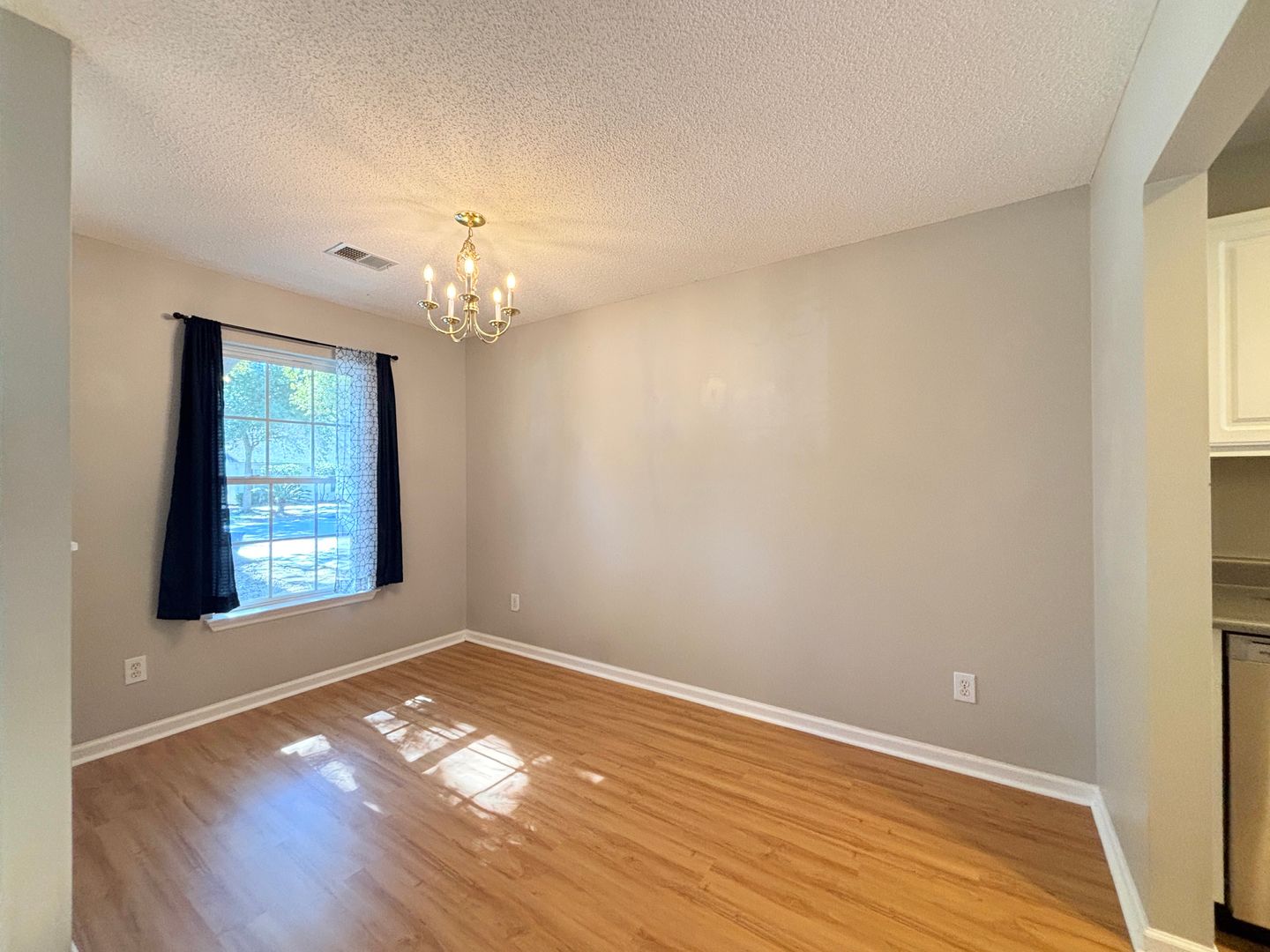 This beautifully maintained, move-in-ready townhome in Meridian Place has been freshly painted throughout and features newly refinished kitchen and bathroom cabinets. The functional floor plan includes a front dining room, a galley kitchen with stainless steel appliances and a refrigerator that conveys, and a spacious living room with vaulted ceilings and a gas-log fireplace. A brand-new sliding glass door opens to a fully fenced backyard with an extra storage closet.