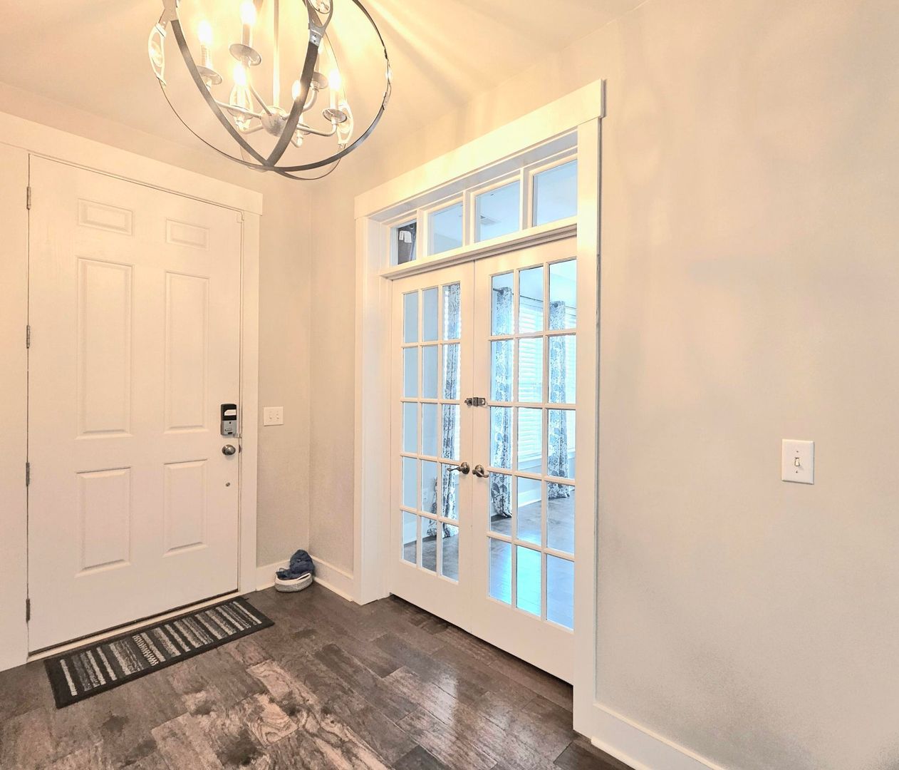 The primary suite is conveniently located on the main floor and includes an impressive, spa-like bathroom with dual vanities. This suite also features a large walk-in closet that provides direct access to the laundry room. Upstairs, you will find two additional bedrooms and a versatile flex room, ideal for a home office, media room, or play area.